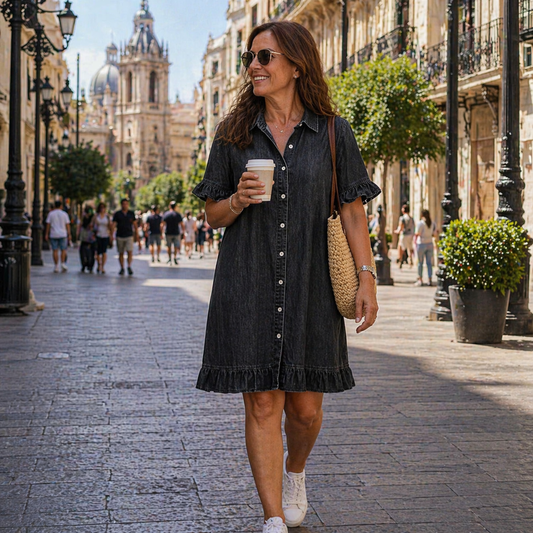 Elodie | Vestido Denim Cómodo con Detalle Fruncido